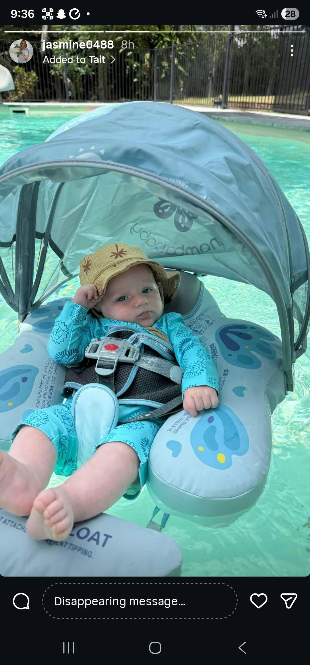 - Package Includes: 1 x Baby Swim Float, 1 x Tail Float, 1 x Canopy